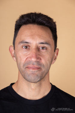 The headshots are usually done using my mobile photo studio: a rolled paper backdrop on stands with studio lights. Alternatively we can use a plain wall if you have one. Or we can shoot on-location.